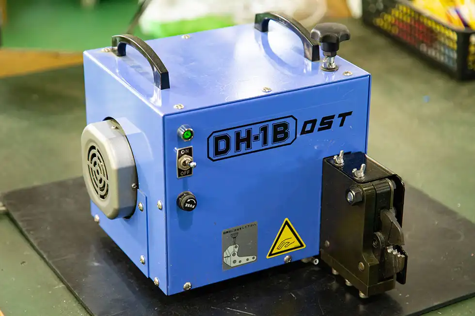電線切りで加工された電線を、アプリケーターを交換することでさまざまな連鎖型圧着端子を使用し、圧着することができます。